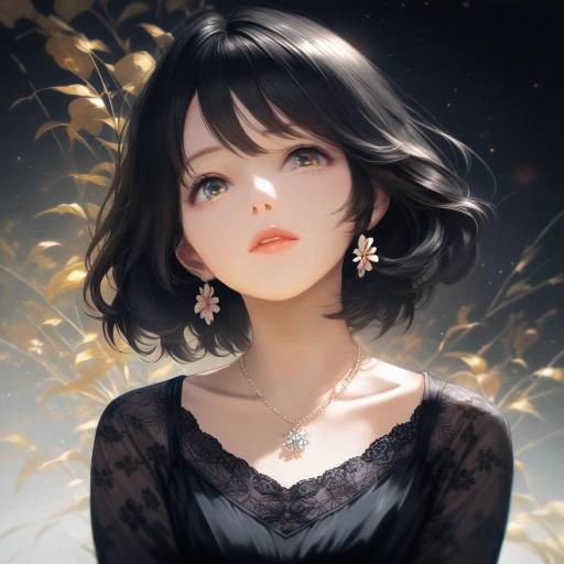 anime style, cute cat girl with brown hair and cat ears, big eyes, blush, soft fur collar, joyful expression, depicted in digital art, enchanted forest clearing, moonlit dusk scene, Classic Looney Tunes inspiration