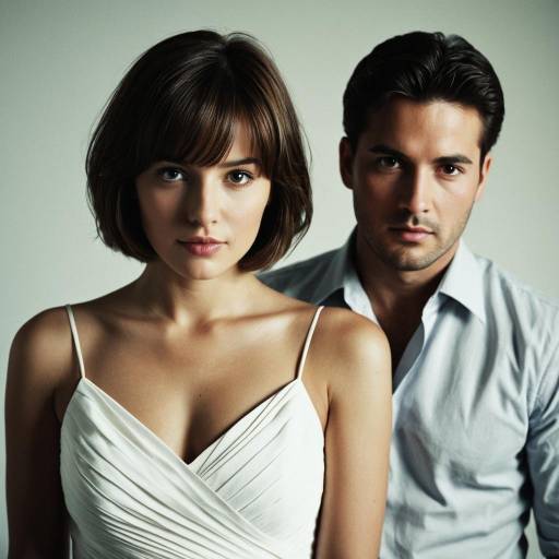 Woman, chic, tailored blazer suit with sharp lapels and decorative buttons, fitted silhouette, full-length trousers, frontal zipper closure, paired with black open-toe high heels, accessorized with a silver arm cuff.