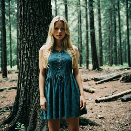 content woman in soft lavender jumper dress over a turtleneck, posing in a lively flower field