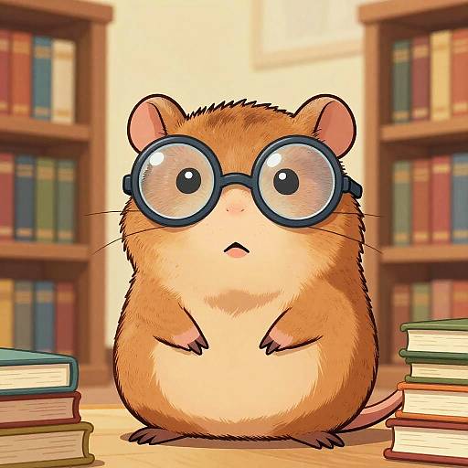 Nerdy librarian with messy bun and oversized sweater, reading a book under a reading lamp in a quiet nook, filled with scrolls and manuscripts, gentle pastel color palette