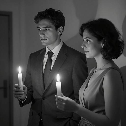 Light and darkness depicted as a candle in the night. The artwork emphasizes contrast and illumination in a harmonious, philosophical composition.