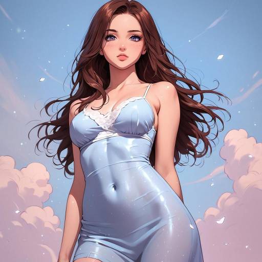 Sexy Woman, minimalist, beige silk slip dress, fitted silhouette, solid color, plain design, orange sunset urban rooftop background --sref 1390