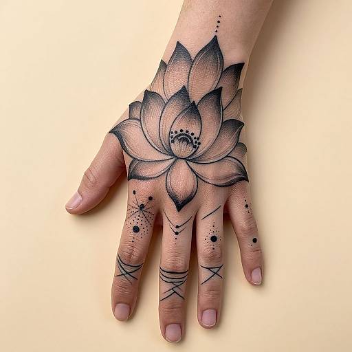 Create a full arm tattoo design featuring a lotus flower motif. The tattoo is composed of fine line art. Rendered in pastel colors with medium detail.