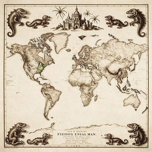 Vintage poster of a faded map, in the style of adventure spirit with historical richness, explorer vibe. Detailed, hyper-realistic illustrations and parchment textures in sepia and navy tones, wide lens composition for an immersive look.