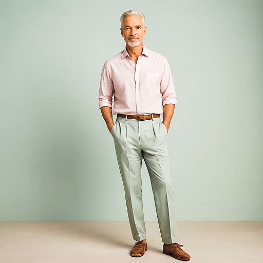 linen pants outfit, worn by retired explorer, featuring tailored linen slacks and checkered shirt, in earthy greens and clean whites, captured in breezy coastal fashion shot.