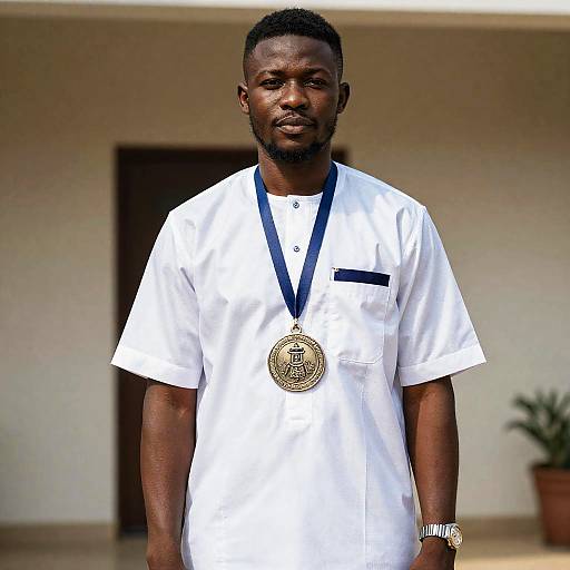 Man in ethnic style outfit, average height with a clean-shaven face, lean physique with long hair tied back, wearing colorful dashiki shirt paired with loose fitting cotton pants, captured in a photo style inspired by Anna Liu.