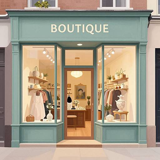 a stylish boutique that mixes a display area and a fitting room, crammed with clothing racks and cluttered with accessories.