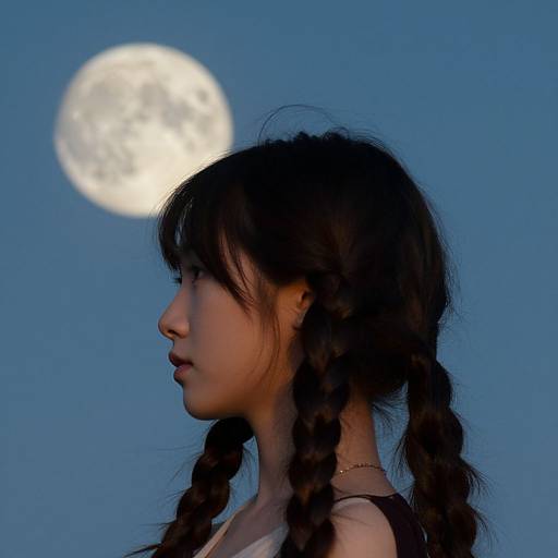 A photorealistic portrait of the Moon personified as a serene woman with a starry night sky displayed behind her. She appears strong, muscular, and tall, captured with Sony A7R IV, F2.8, ISO100, 24mm. The lighting is volumetric, highlighting insane details to create a powerful, imposing look.