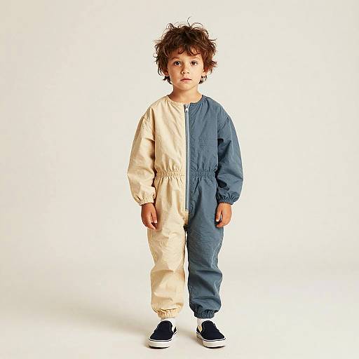 Fishtail Braids hairstyle on young boy, wearing striped sweater and jeans, in playground, captured in fashion editorial style with bright overcast sky.