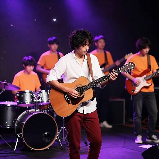 Technique Create a digital illustration of musicians performing. Set in a lively street festival, with vibrant lighting capturing the essence of summertime. Inspired by Pablo Picasso, the composition emphasizes diverse musical instruments.