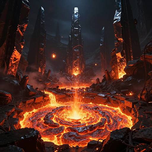 Magma Caverns, towering obsidian walls, dim glow, endless night, Greyscale Rendering, Monochrome shading
