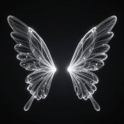 celestial moth wing, iridescent opal-and-indigo kaleidoscope, lunar moth sigil, entwined star-moth glyphs and alchemical runes, glowing motes of wing-runic script drifting outward, velvet obsidian void, prismatic silver-gold rimlight, luminescent windlike spirals, soft pearlescent halo, hushed nocturnal enchantment, dramatic chiaroscuro highlights, mystifying, dreamlike haze, micro-patterned scales, delicate vein filigree, dusting of starlight, transcendent nocturnal guardian presence, wide-angle cinematic depth with subtle film grain, 4K, ultradetailed