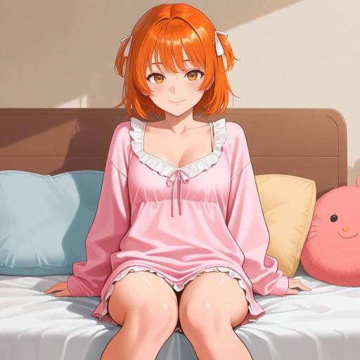 Candace Flynn, cosplay costume with long bright orange hair, simple red sleeveless dress and white belt, youthful style
