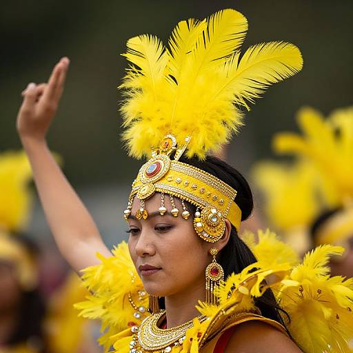 samba feather costume,1girl, solo, feathers, jewelry, necklace, headdress, long hair, native american, earrings, black hair