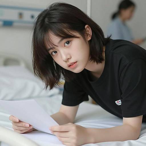 Bright photograph of a woman in her 30s with a psychiatrist in his 50s, sitting in a lounge with a medical catalog, teal and white colors in a healthcare setting, sharp and detailed, bright lighting, magazine-quality, 4k high resolution.