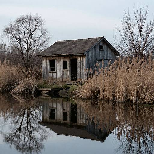 In a quiet lakeside, towering trees rise against a clear soft pink sky. The atmosphere feels tranquil and inviting, evoking a sense of calmness.