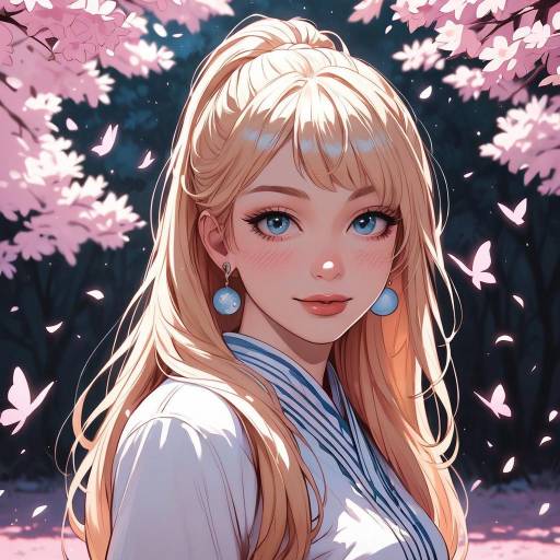 Photorealistic image of a blooming cherry blossom tree, a woman stands as the blossoms flow from her light red hair, closeup, 8k, beautiful face, detailed facial features, elegant, vray tracing, cinematic lighting, low angle, hyper detailed