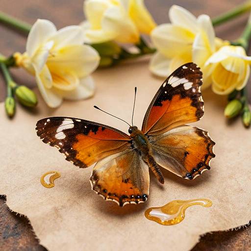 colorful butterfly, soft pastel tones on a floral pattern background with digital painting style and shimmering light for a charming sticker design.