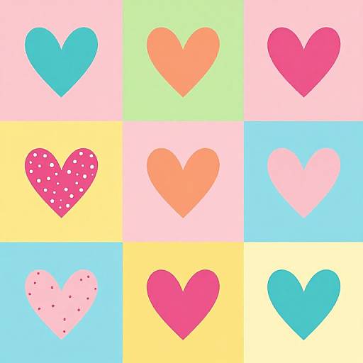 Heart shape filled with intricate candy designs, whimsical style, joyful mood, bright sunlight filtering through, crisp vector lines, set against a white background, high quality