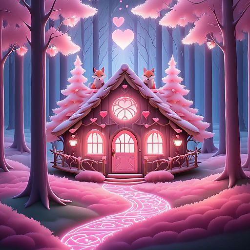 Pink tree-shaped light painting with a surrealist design set against a dark purple backdrop. The artwork features soft, glowing pink hues and graceful curves, creating an ethereal ambiance. Styled with high-contrast and a contemporary art approach, the scene exudes a tranquil and serene feel. Ultra-detailed and rendered in a digital masterpiece quality, the composition showcases modern artistic expression with captivating visual harmony and artistic illumination.
