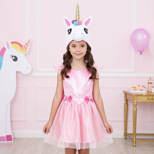 Man Unicorn Costume, dressed in a pink outfit and a pink unicorn horn