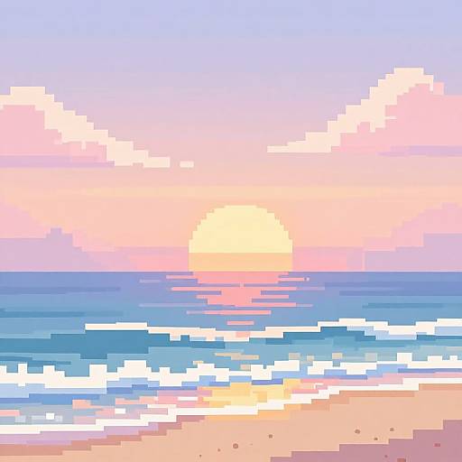 Arid Dunes, pixelated coral landscape, shimmering light, early dawn, Pixel Art, Retro 8-bit/16-bit style