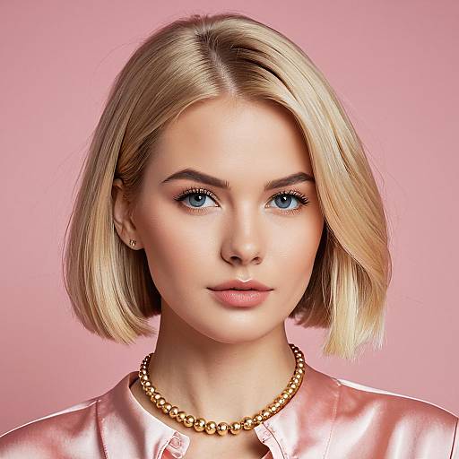 Platinum Blonde hairstyle on woman, wearing casual suit, in photo studio, captured in fashion editorial style with soft natural sunlight.