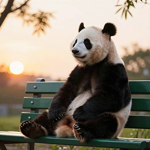 Photorealistic rendering of a solitary bench in a park during golden hour, vibrant orange, pink, and red hues, gentle waves, sense of tranquility and reflection, soothing and immersive atmosphere
