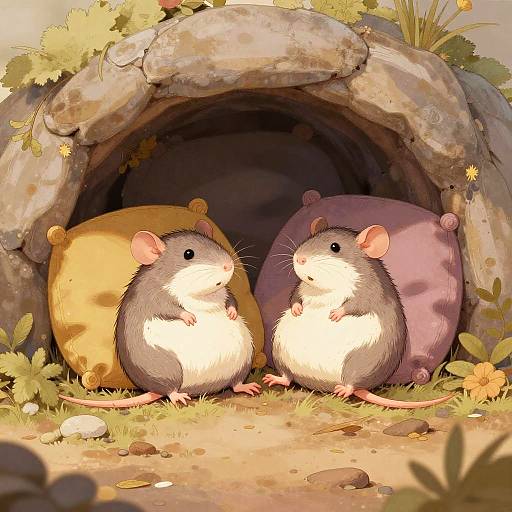 two puppies playing together sitting on a cozy living room rug surrounded by colorful toys and a crackling fireplace, illustrated in charming storybook style with soft hues, featuring playful barks and wagging tails, warm and clean storytelling art