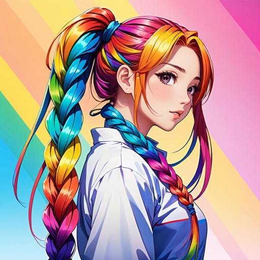 Detailed anime-style portrait of a bold character with short lavender hair and glowing tips, expressive large eyes with kaleidoscope-style pupils in electric colors, wearing a cropped jacket with rainbow zippers and pastel mesh, colorful starry background in neon green and purple, high contrast with bold outlines and flat color areas, dynamic and captivating expression, pop art and modern anime fusion, vibrant neon and pastel colors, energetic and youthful atmosphere.