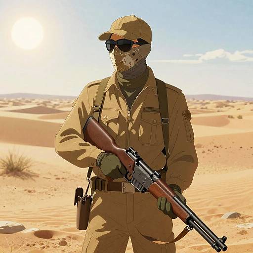 A drawing of a soldier with a rifle, military concept art of comiket cosplay, close-up portrait of mercenary.