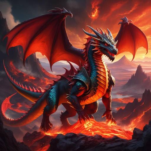 A mythical creature with a red and black color palette, based on dragons, showcasing an exotic design and intricate scales.