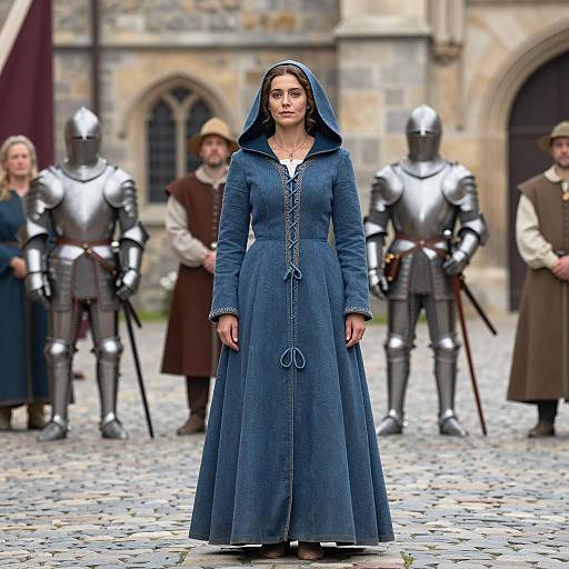 A regal knight from the 1200s, adorned with golden chainmail and silver medallions, stands gracefully in a lavish setting.