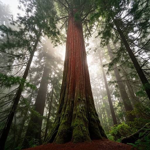 Photorealistic shot of a tall ancient redwood forest, with light mist hugging the tree trunks, highly detailed and sharp focus, in the style of Unsplash and Nature Conservancy, vibrant colors and depth of field in UHD resolution.
