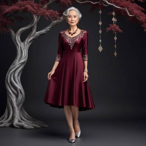 woman in an elegant gown set against a backdrop of vintage glamour and contemporary, featuring flowing silhouettes and soft earth tones illuminated by ambient candlelight.