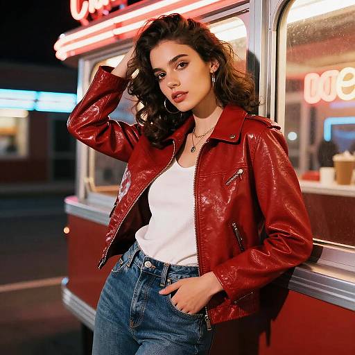 You're in a bustling nightlife scene, surrounded by vintage vinyl records from the 70s, capturing their timeless elegance with a camera, neon lights, blending old and new aesthetics.