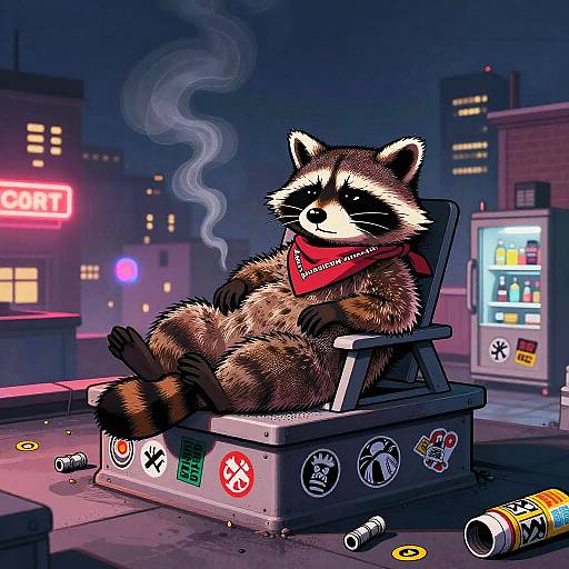 spirited masked raccoon on a spaceship in the heavens fluttering about