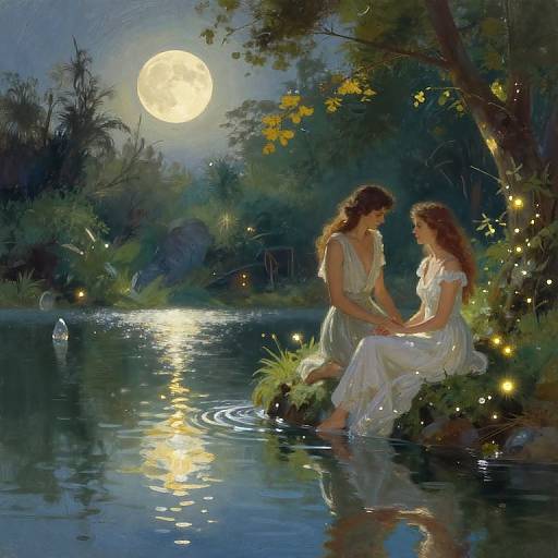 a_romantic_tale set in a moonlit garden with blooming roses, a couple embracing gently, soft glowing lights, dreamy pastel colors, impressionist style painting