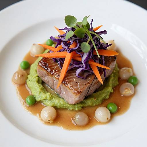 Split roast sizzling on a rustic grill with smoke rising, golden-brown crust and juicy interior, surrounded by herbs and roasted vegetables, warm lighting, rustic kitchen backdrop