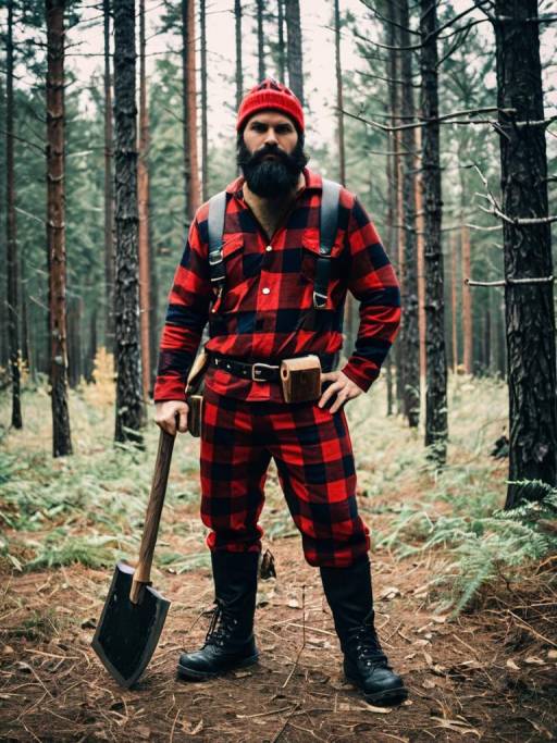 Man in Lumberjack Costume, full-body cosplay photo with axe prop