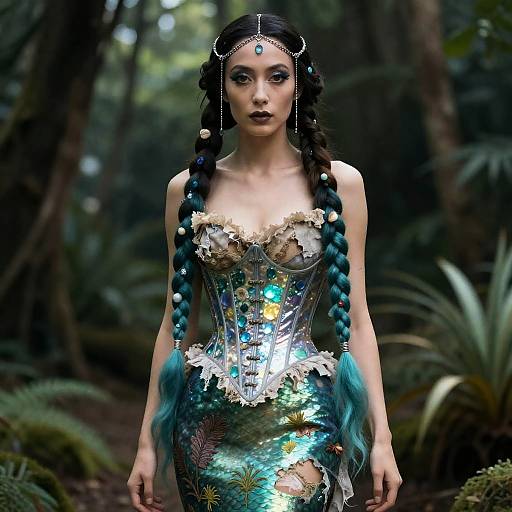Mermaid in an acrylic effect with baroque influence, pastel color palette focusing on turquoise, highly detailed, inspired by gothic and contemporary blend