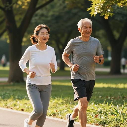 Two men against a bright yellow background. Young man with short black hair, brown jacket, red shirt, gray pants, and gray shoes, grabs older man's waist, bending him forward. Older man with red hair, black jacket, brown shirt, black pants, and black shoes, smiles. Young man's face shows excitement, older man's face shows happiness. Both standing on yellow floor.