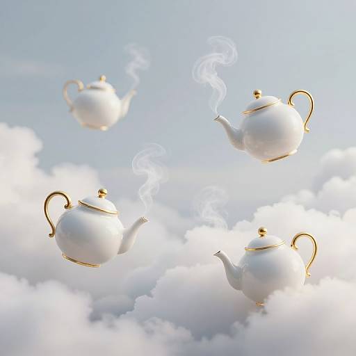 Levitating coffee cup with vibrant colors and surreal shapes, including shimmering crystals and a celestial theme. Captured in ethereal art, featuring dynamic splashes and intricate contour work.