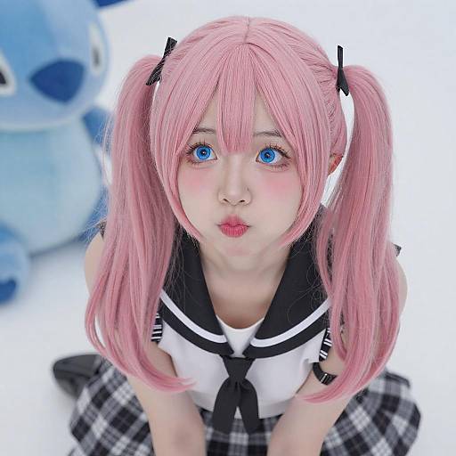 short pink hair costume, solo, pink hair, looking at viewer, 1boy, blurry background, male focus, blurry, outdoors, short hair, closed mouth