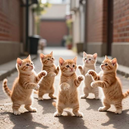 Full size photo anthropomorphic mum tabby kitten dressed in a cute dress and fluffy slippers and her daughter tabby kitten dressed in the same cute dress, they are cuddling like mum and daughter tenderly.