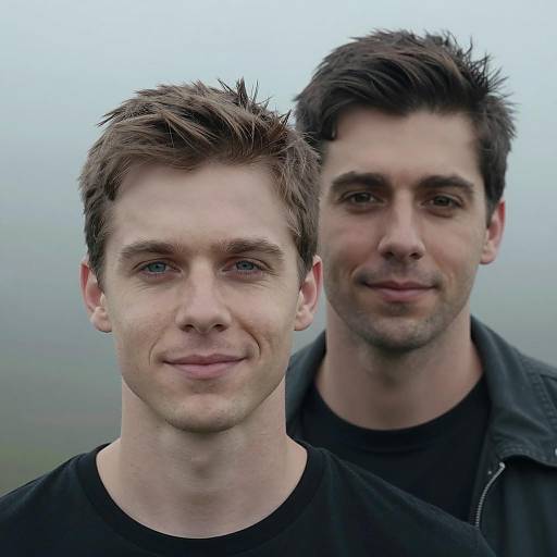 soft digital painting of two figures hugging, warm and cool color contrast with pastel dusk blue and soft peach color palette, gentle shading and smooth texture, minimal and light background, whimsical and cute style, soft lighting, delicate details