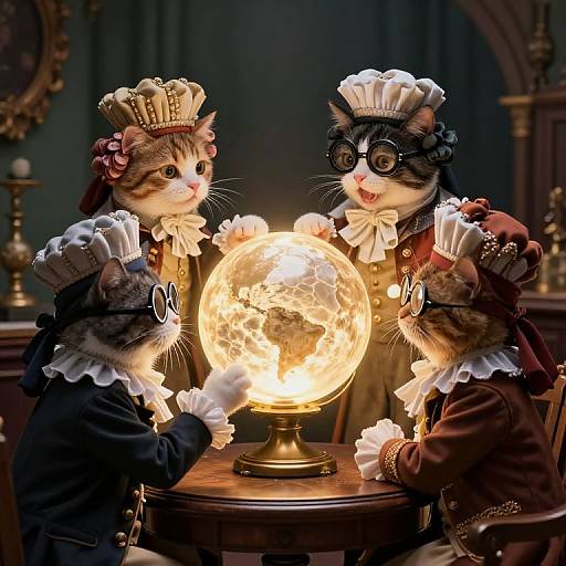 Anthropomorphic cat in a bowler hat doing business on a luxurious sofa. Soft lighting, 6K resolution, trending on ArtStation, fantasy art style.