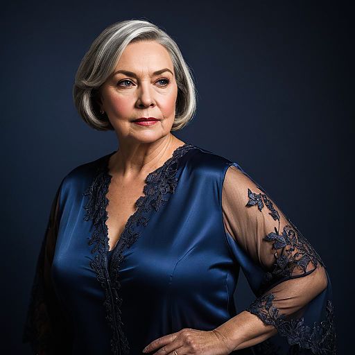 Shoulder-Length Bob hairstyle on young woman, wearing silk evening gown, in modern art gallery, captured in fashion editorial style with soft diffused light.
