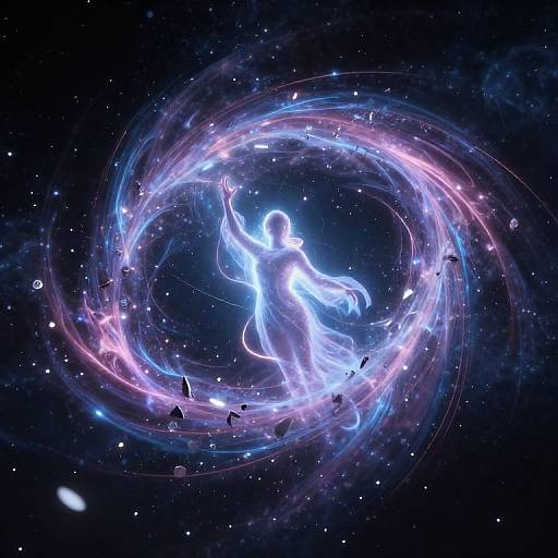 futuristic pirate with robotic arm in distant planet's alien marketplace, as a galactic aurora shimmering above pours radiant lights like rain on the crowd, creating a mysterious and captivating atmosphere. Captured in surreal digital painting, this scene showcases an interstellar trade negotiation with ultra-detailed portraits, Seed 5678 ar.