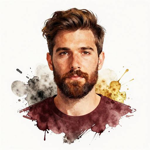 a classic portrait of a man with a beard wearing a dark shirt, painted in warm earthy tones with chiaroscuro lighting, oil painting texture with impressionist brushwork, against a muted beige background